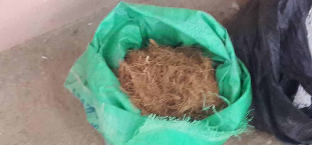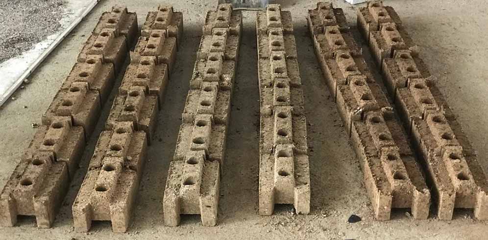 The soil is collected, ground into powder, mixed with stabilisers like the coconut fibre, and then dried or cured to harden